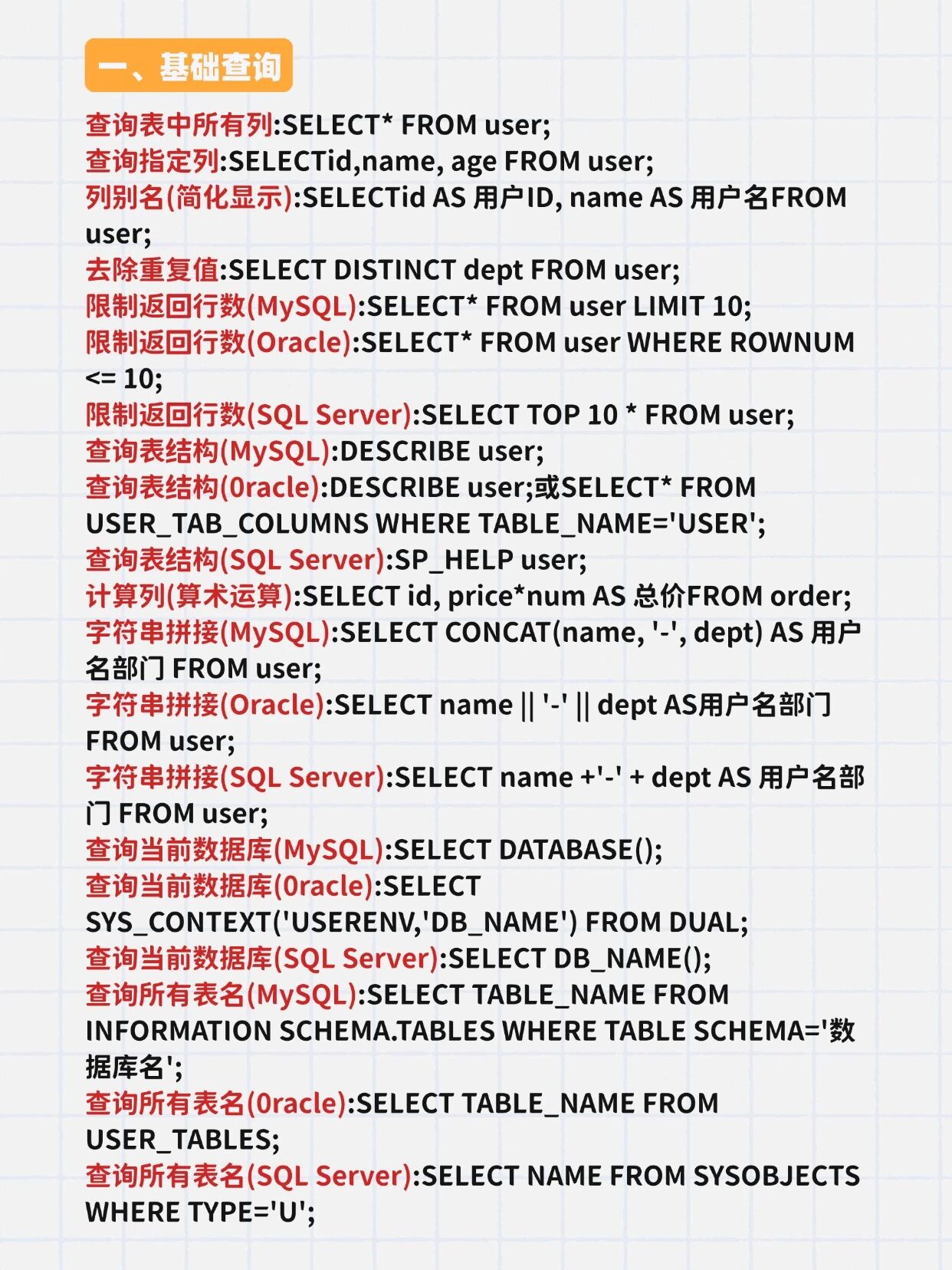 SQL 语句速查手册:200 个高频用法,工作学习直接套用